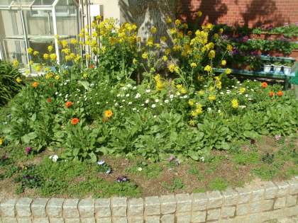 花壇 公開日 2020/02/21 更新日 2020/02/21 お知らせ 今日は快晴無風でとても暖かくなりました。花壇の花もたくさん咲いています。菜の花・キンセンカ・パンジー・ビオラ・サクラソウ・・・。特にノースポールという白い花がたくさん咲いています。 いいね(0)