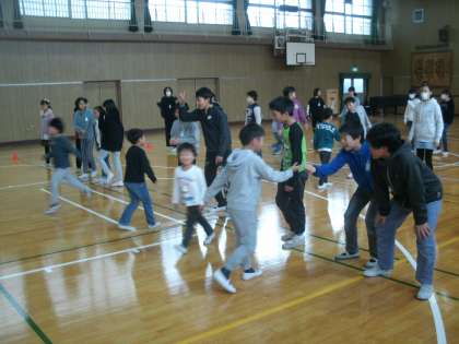 6年生と遊ぼう週間(1) 公開日 2020/02/25 更新日 2020/02/25 お知らせ 今日から「6年生と遊ぼう週間」が始まりました。今日は1年生と6年生が一緒に体育館でじゃんけんゲーム「大将じゃんけん」をして楽しみました。 いいね(0)