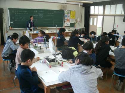 理科学習の様子です。今日の実験は「ふっとうさせたときに減った水はどこへいったのだろう。」です。