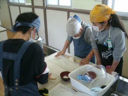1組に負けないように、おいしい手打ちうどんを作ろう。