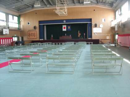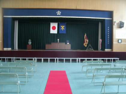 式場も花瓶に花が入れば完成です。明日は天気も良くなりそうです。卒業する子ども達にとって素晴らしい卒業証書授与式になりますように。
