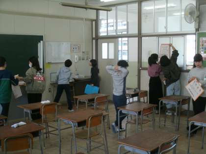 教室の掲示物を外したり、教室や廊下の掃除をしました。