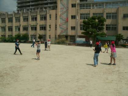 元気に登校してくれました。担任の先生は木村先生です。今年度、喜連小学校から転任してこられました。初顔合わせということで、最初は子ども達も先生も少し緊張気味でしたが、ドッジボールで遊ぶころにはたくさんの笑顔が見られました。