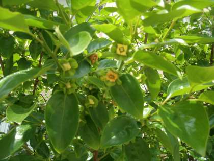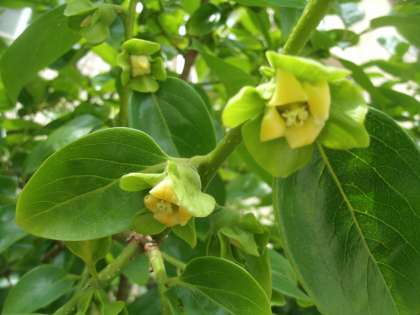 校庭の柿の花がたくさん咲いています。温州みかんと同様に、ずいぶん樹勢が弱くなっていて、ここ何年かは全く実をつけてくれませんでした。でも、今年はたくさんの花が咲き、すでに小さな実がつき始めています。渋柿かどうかはわからないのですが・・・。