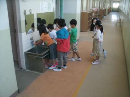 1年生が約束を守って、しっかり手を洗っていました。