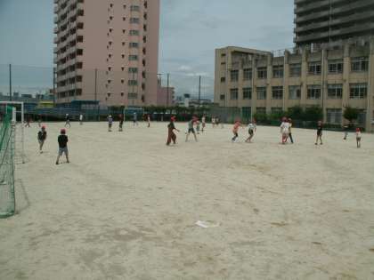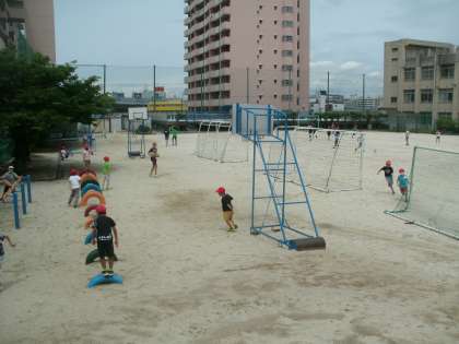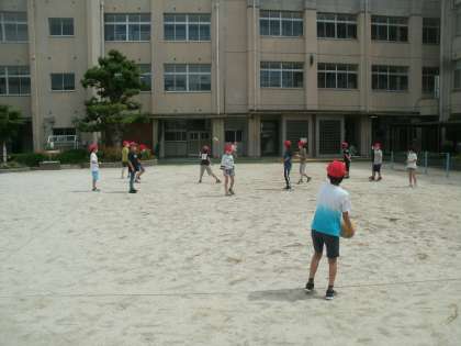中学年や高学年は運動場でドッジボールやバスケットボールをしたり、鬼ごっこをしたりして遊んでいました。