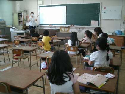 手を叩いてリズムを取りながら言葉の学習をしています。