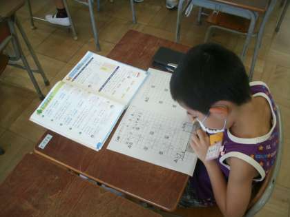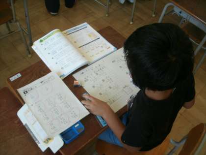 算数科学習のようすです。筆算の復習プリントに取り組んでいました。