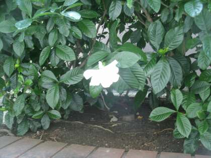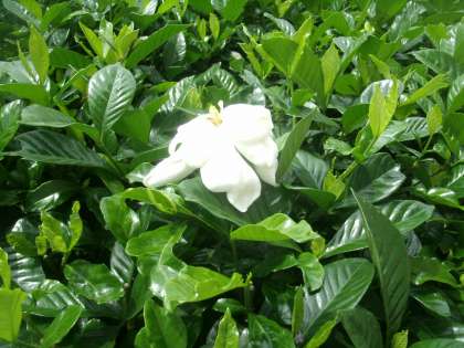 今年も体育館西側のクチナシが白い花を咲かせています。クチナシの花は甘くていい香がします。