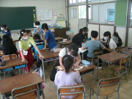 「当番活動」は掃除当番・給食当番・日直当番というようなものがあり、学校生活を送る上で必要なものです。否が応でも輪番でしたり、分担したりして全員でこなしていかなければなりません。そこにはあまり創造的な活動内容を盛り込むことはできません。給食当番は給食を運び、配膳し、返却する。掃除当番は分担場所を清掃する。それだけのことです。でも「係活動」は違います。自分たちで考えた係であり、自分たちで考えた係の活動内容であるということです。高学年になればなるほど、その活動はクリエイティブになっていきます。先生のお手伝い的な係ではなくなっていくことになります。今日は5年生がそれぞれの係に分かれて、その活動内容を話し合っていました。