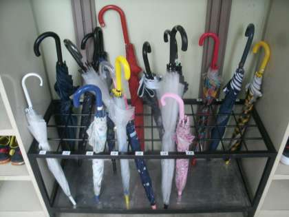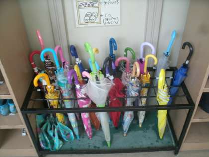 どの傘もしっかり束ねられて、決められた場所に入れられています。当たり前ですよね。この当たり前を1年生から6年生までができる金塚小学校でありたいと思います。