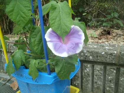 1年生の育てているアサガオ。今日、最初の花が一輪咲きました。つぼみはたくさんついているので、明日からは次々と咲いてくれると思います。子ども達は自分の鉢のアサガオが咲くのを楽しみにしています。