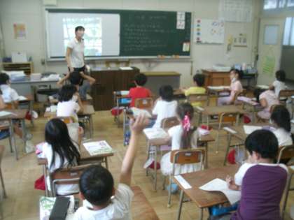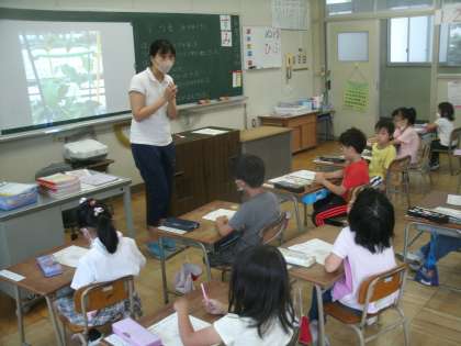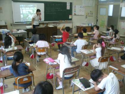 生活科学習の様子です。「あさがおをそだてよう」という学習に取り組んでいます。ずいぶん大きくなって、つるを伸ばしているアサガオについて子ども達自身が気の付いたことを発表しています。