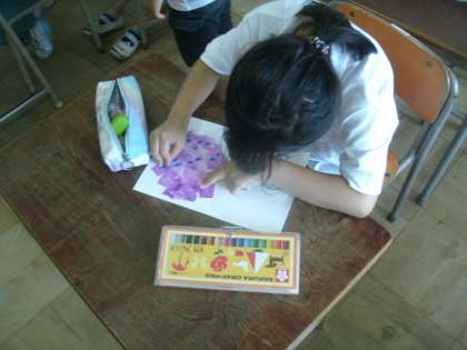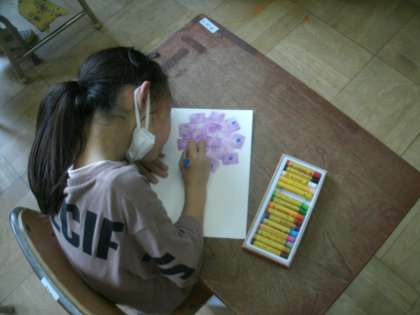 図画工作科学習の様子です。紫陽花を作っています。本物に負けないくらいきれいな紫陽花になりそうですね。