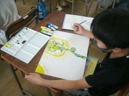 図画工作科学習の様子です。「まぼろしの花」という題で一人一人が想像した花を描いています。