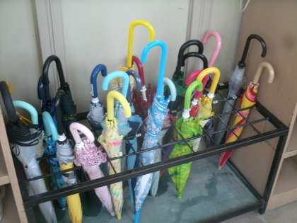 以前に1年生と6年生の傘立ての様子を紹介しました。今日は2年生と5年生です。
