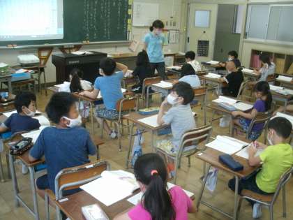 国語科学習の様子です。あまんきみこ作「名前を見てちょうだい」の学習です。ワークシートを使って場面ごとにまとめていきます。