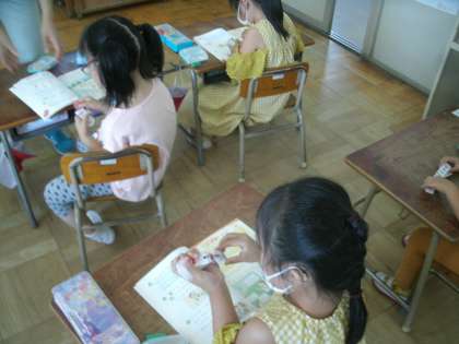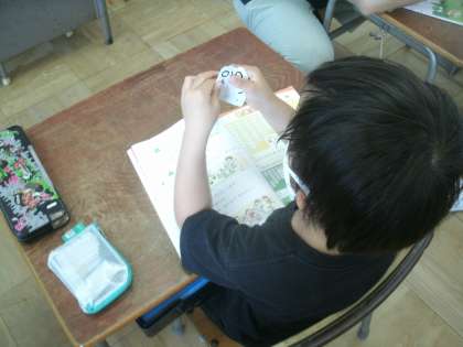 算数科学習の様子です。今日は計算カードを使って学習しています。計算カードがボロボロになるくらい頑張ってほしいと思います。