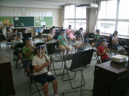 学習の様子(7月7日) 6年1組 公開日 2020/07/07 更新日 2020/07/07 お知らせ 音楽科学習の様子です。、フェイスシールドを装着して、リコーダーの合奏「ラバーズコンチェルト」をしています。 いいね(0)