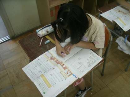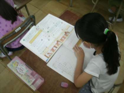 算数科学習の様子です。今日の学習課題は「直線のひき方をおぼえよう」です。30cmのものさしを使って上手に直線はひけたでしょうか。