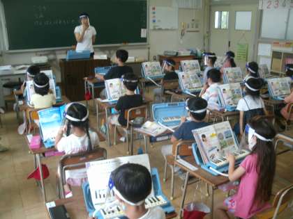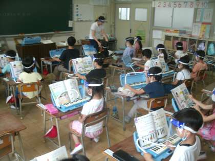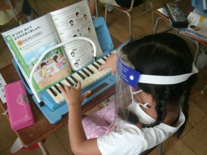 「鍵盤ハーモニカ」 1年生 公開日 2020/07/10 更新日 2020/07/10 お知らせ 初めて鍵盤ハーモニカに取り組みました。子ども達は興味津々。やらなければならないことをそっちのけで触っている子どももいます。先生のお話も耳に入ってこないぐらいです。そのうちにあっちでプワーン!、こっちでプワーッ!そっちでプー!と音が鳴り出すから大変です。担任の尾崎先生は忍耐強く指導しておられました。先ず最初に1年生の子ども達が学ぶのは「勝手に音を出しません。」ということです。 いいね(0)