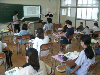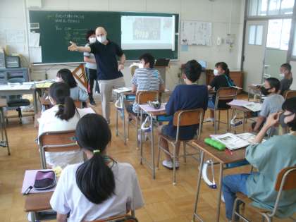 アダム先生も一緒に英語学習に取り組みました。今日の"Goal"は「各地の行事でできることを伝える方法を知ろう」です。