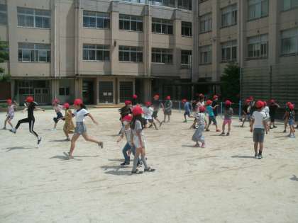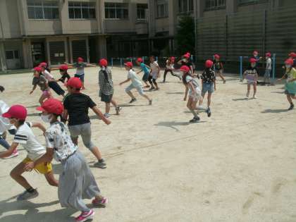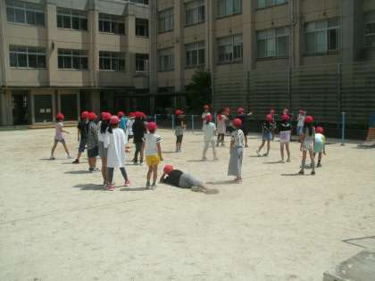 15分休みに4年生が「だるまさんがころんだ」で遊んでいました。