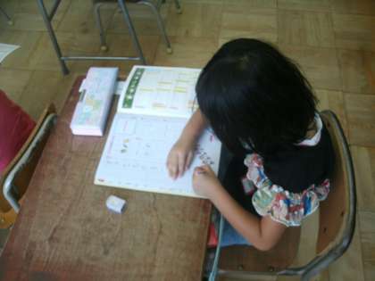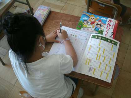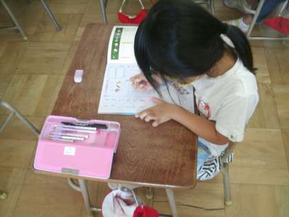 ワーク「かんじのがくしゅう」に取り組んでいます。今日の漢字は「一」です。