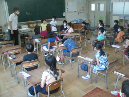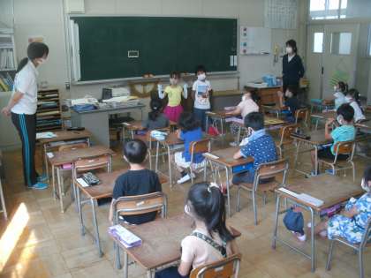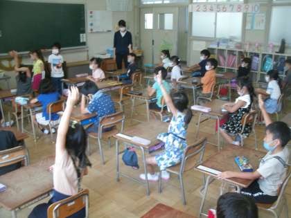 「朝のスピーチ」に取り組んでいます。しっかり聞いて、スピーチが終わったら質問をしてくださいね。