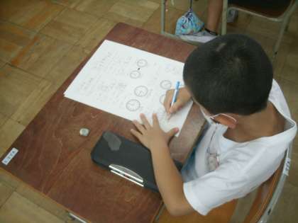 今日は「時こくと時間」の評価テストに取り組みました。名前を丁寧に書いて、しっかり頑張ろう。