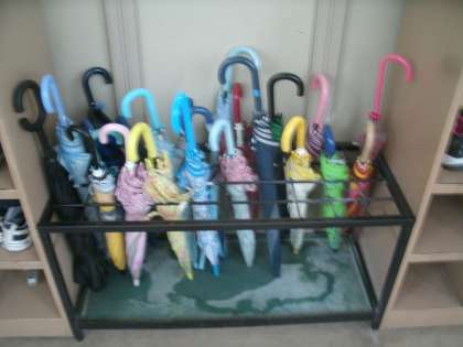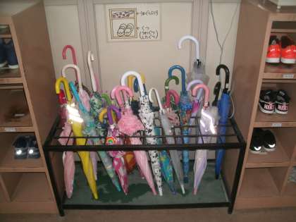 低学年の傘立ての様子です。 写真1 1年生 写真2 2年生