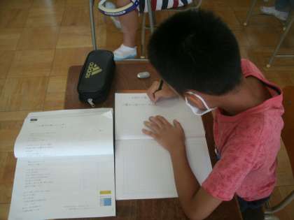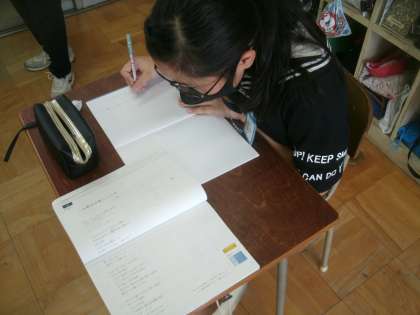 国語科学習の様子です。「いま始まる新しいいま」(川崎洋)という詩をノートに丁寧に視写しています。