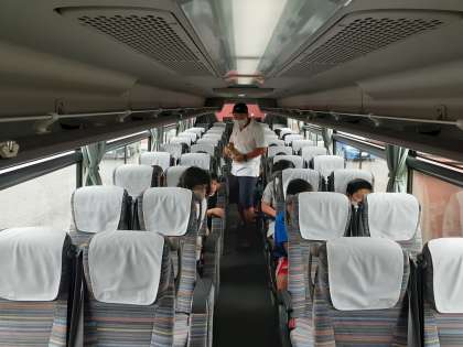 退所式を終え、先ほど午後1時過ぎに宿舎を出発しました。