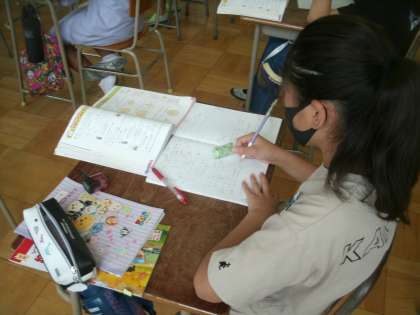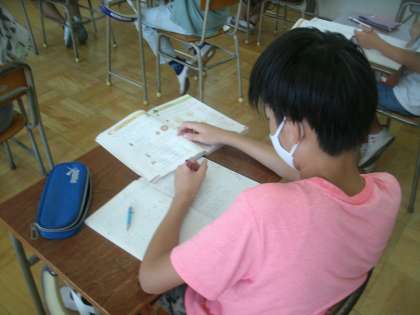 算数科学習の様子です。円の面積の求め方を確かめています。円周率が3.14なので「半径×半径×円周率」は理解していても、計算間違いをしてしまうことがよくあります。気をつけましょう。
