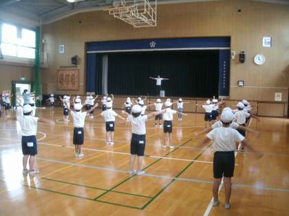 運動会の練習に取り組み始めました。1年生と一緒に練習をするので、お兄さん・お姉さんとしてしっかり頑張ってくれています。