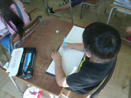 算数科学習の様子です。今日の学習課題は「3つのかずのけいさんをしよう」です。