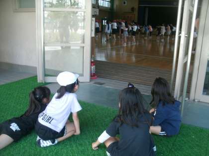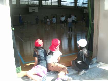 低学年の子ども達が応援団の練習を見ていました。