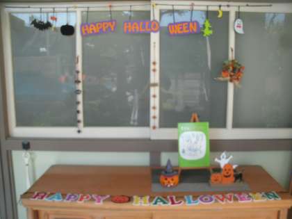 日本でもここ10年ほどですっかり年中行事として定着したハロウィン。仮装をする若い人達も多くなり、経済効果はクリスマスに匹敵するほどになったそうです。10月31日のハロウィンに向けて、校長室の前の飾りつけをしました。
