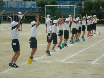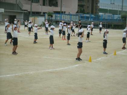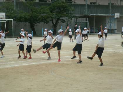 運動場での練習が始まりました。子ども達は一生懸命です。笑顔いっぱいの演技になると思います。