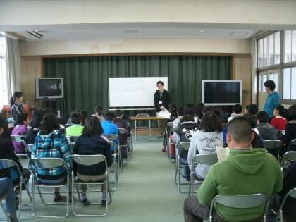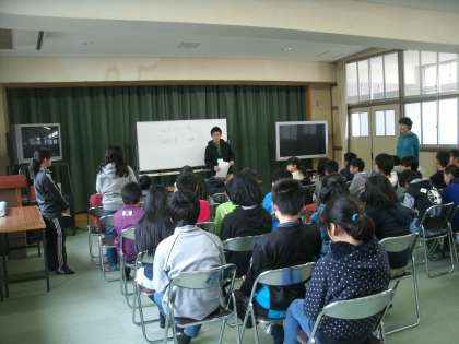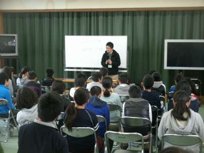 1月13日(火)、校区内にある「山王地域在宅サービスステーション みどり苑」の施設長の方に来ていただき、みどり苑の事業内容、なぜ高齢者福祉の仕事に就いたのか、施設での高齢者の方々の様子等についてお話をしていただきました。また、子どもたちの質問にも答えていただきました。1月19日(月)〜21日(水)にみどり苑を訪問し、高齢者の方々との交流をしますが、6年生の子どもたちにとって、交流にに向けてのよい学習になりました。