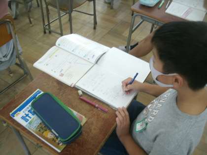 学習の様子 5年生 公開日 2020/10/12 更新日 2020/10/12 お知らせ 算数科学習の様子です。習熟度別少人数学習で進めています。今日は「3mのテープを5等分した1つ分の長さを調べよう」です。 いいね(0)