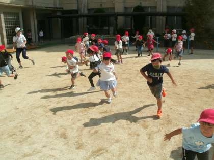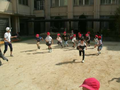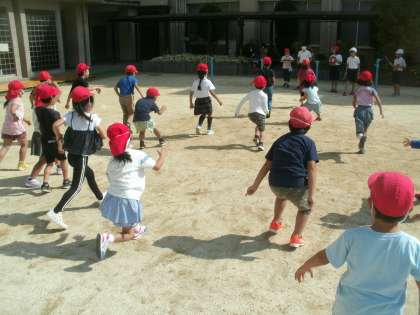 1年生が「だるまさんがころんだ」で遊んでいました。