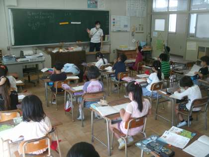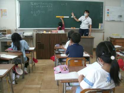 算数科学習の様子です。今日の学習課題は「6+7のけいさんのしかたをかんがえよう」です。