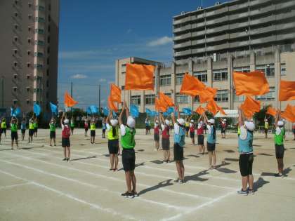 いよいよ最後の練習になりました。金塚小学校で初めて取り組む「Flag」の演技。5・6年生みんなで心を一つにして頑張ってくれると思います。