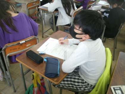 谷口栄養教諭による食育「野菜を食べよう」の授業の様子です。