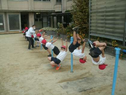 学習の様子 1年生 公開日 2020/11/06 更新日 2020/11/06 お知らせ 体育科学習の様子です。器械・器具を使っての運動遊び領域「鉄棒を使った運動遊び」に取り組んでいます。一人一人が鉄棒の「頑張りカード」を持っています。 いいね(0)