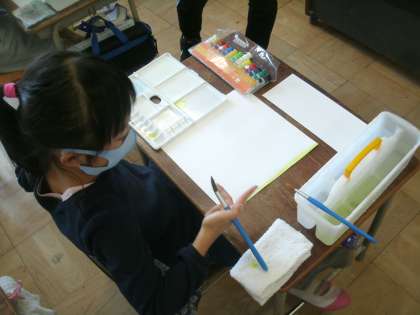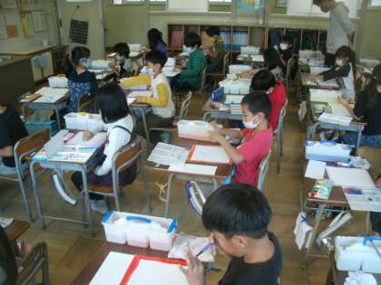 図画工作科学習の様子です。今日の題材は「おしゃれなハンカチ」です。どんなきれいなハンカチができあがるのでしょうか。