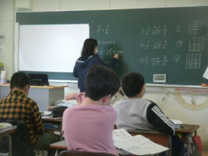 算数科学習の様子です。今日は「分数のたし算・ひき算」の評価テストを子ども達に渡しました。正解できなかったところは必ずやり直しをする事になっています。正しい答えの出し方や考え方を指導者が説明しています。