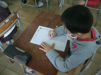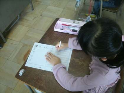 全校遠足の「オリエンテーリング」について絵日記を書いていました。