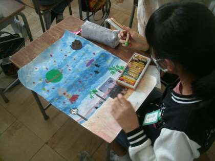 学習の様子 5年生 公開日 2020/11/17 更新日 2020/11/17 お知らせ 図画工作科学習の様子です。以前に紹介した写真を1枚画用紙に貼って、その周りを描いていく図画が完成に近づいてきました。色を塗っていくというのではなく、色を置いていくことで味わいのある作品が出来上がっています。 いいね(0)